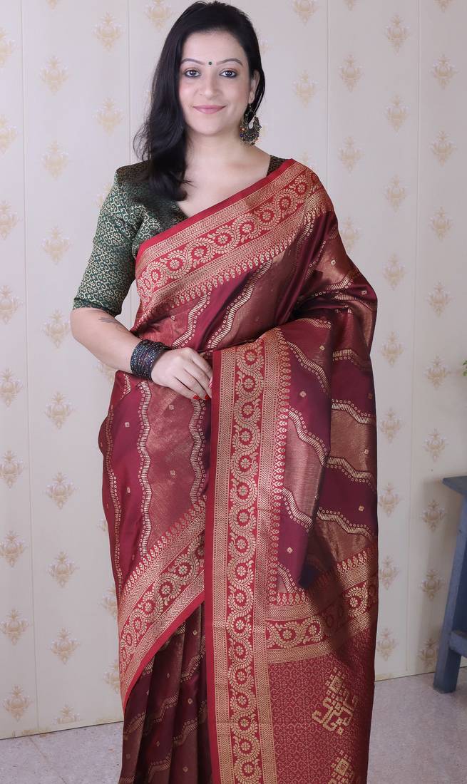 | Product Name | Maroon Color Soft Silk Blend Woven Jari Designer Ethnic Partywear Saree | |