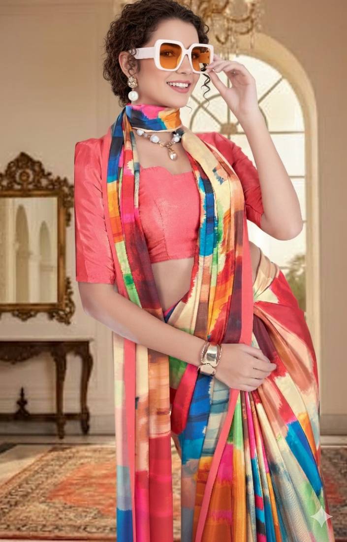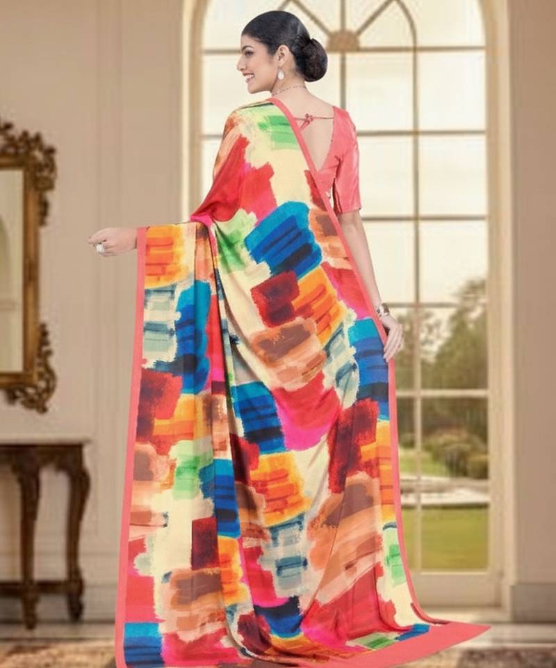 | • | Saree | : | Color- Multicolor / Fabric- Faux Crepe |