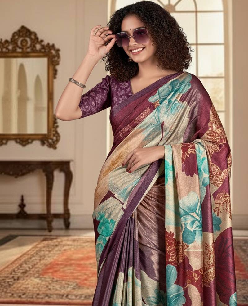 | • | Saree | : | Color- Multicolor / Fabric- Faux Crepe |