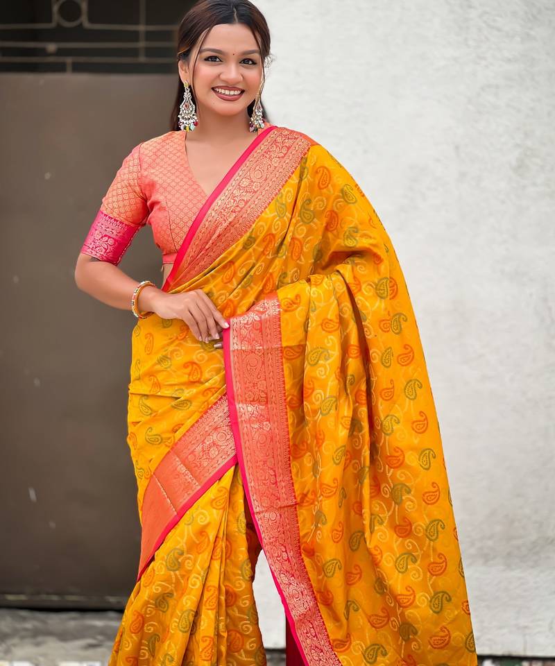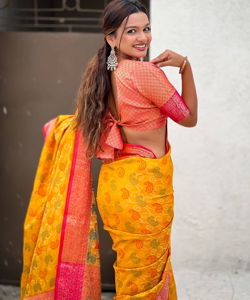 | Product Name | Mustard Color Patola Silk Blend Fabric Woven Meenakari Designer Saree | |