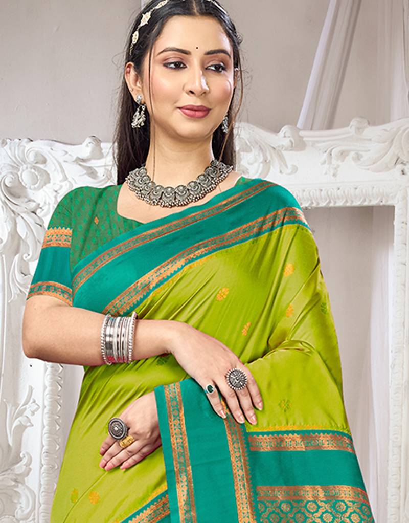 Olive green color art silk blended woven designer ethnic partywear saree