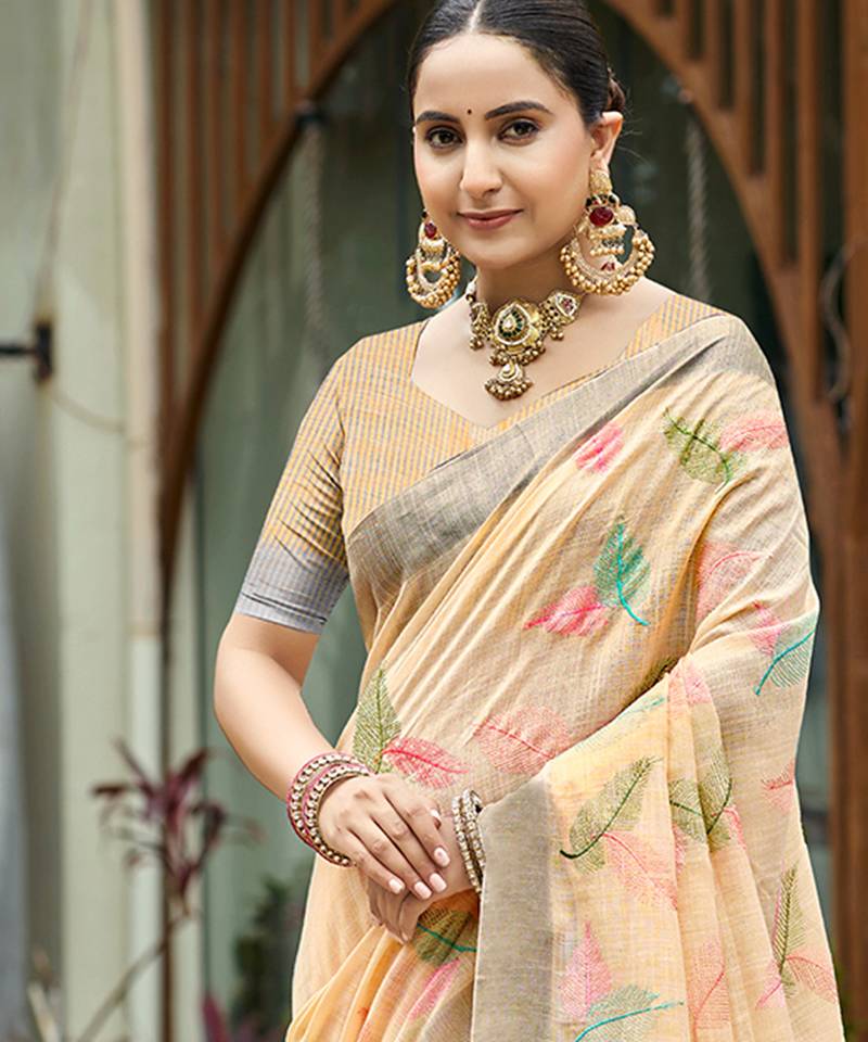 | Product Name | Orange Color Beautiful Rich Looks Designer Linen Fabric Ceremonial Saree | |