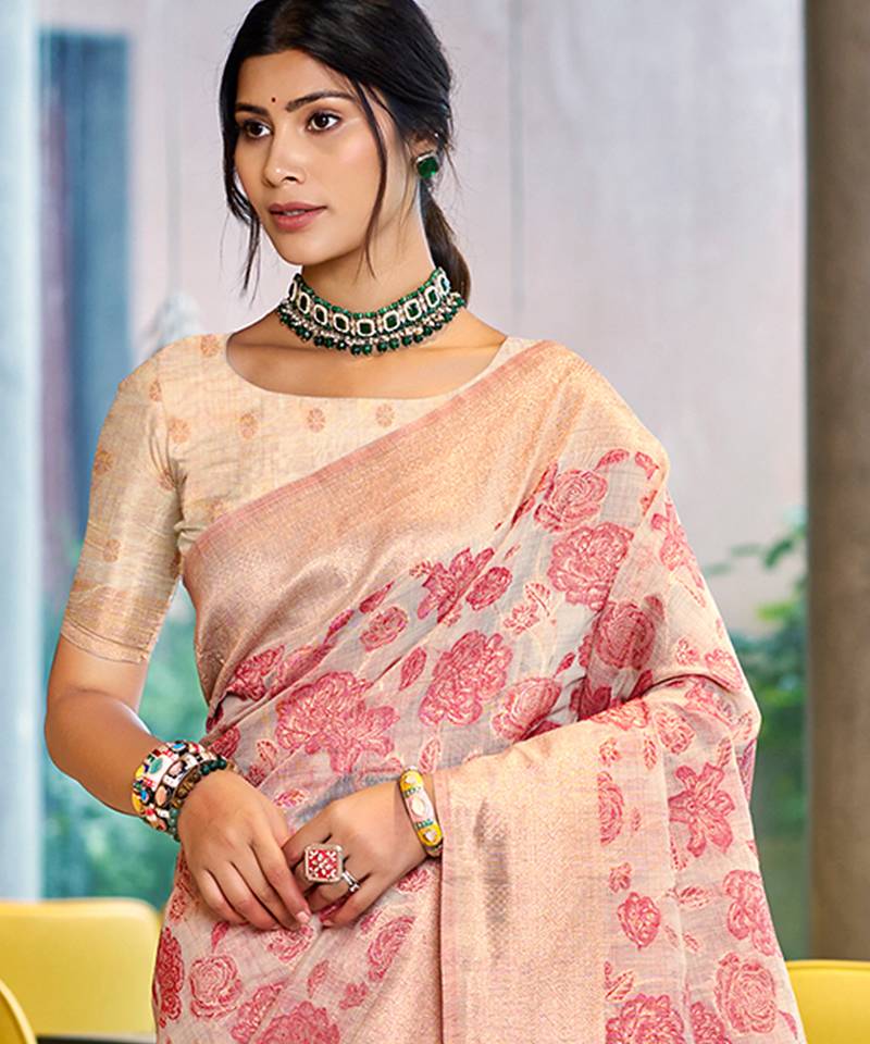 | Product Name | Pastel Pink Color Cotton Silk Blend Fabric Woven Designer Ceremonial Saree | |