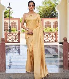 Beige color beautiful woven designer partywear ethnic saree