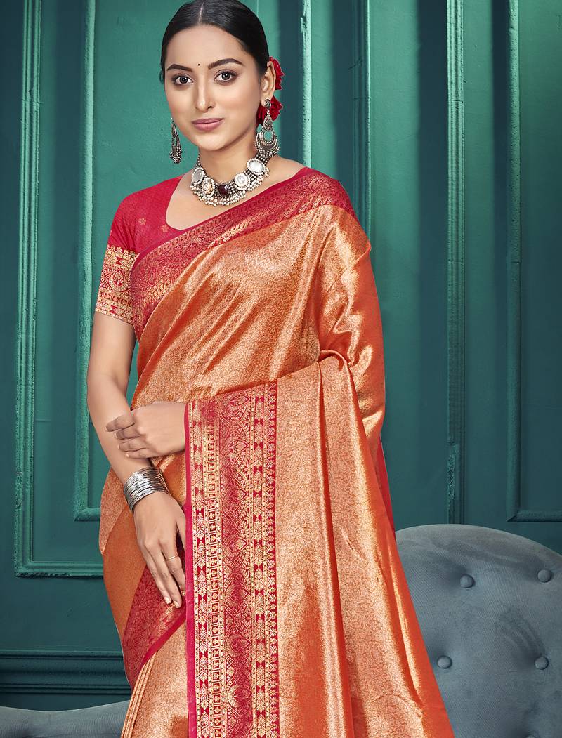 | Product Name | Peach Color Traditional Kanjivaram Silk Blend Blend Saree With Beautiful Woven Designer | |