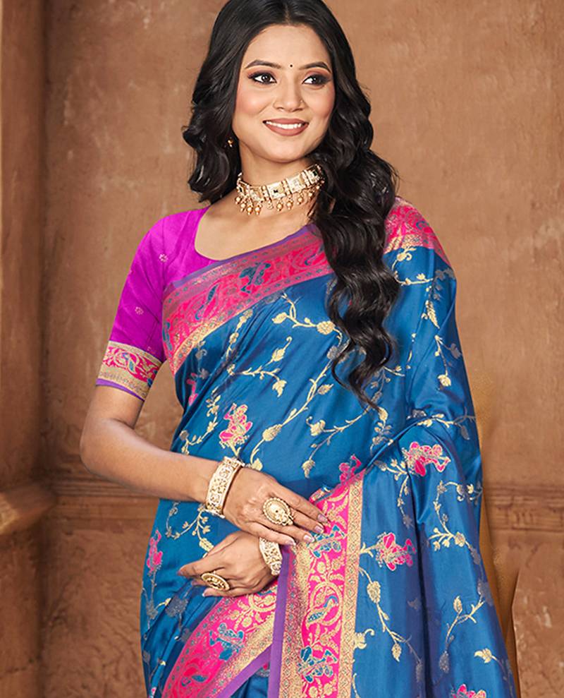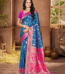 Peacock blue color silk blend fabric woven designer ethnic partywear saree