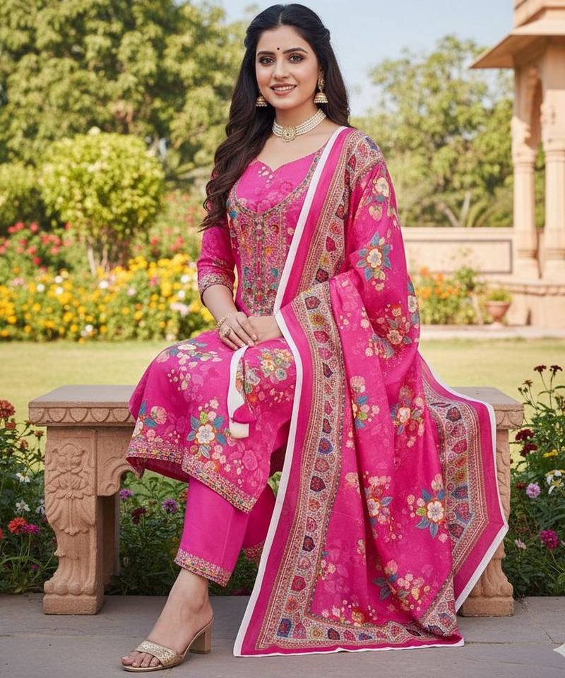 | Product Name | Pink Chinon Ethnic Readymade Suit | |