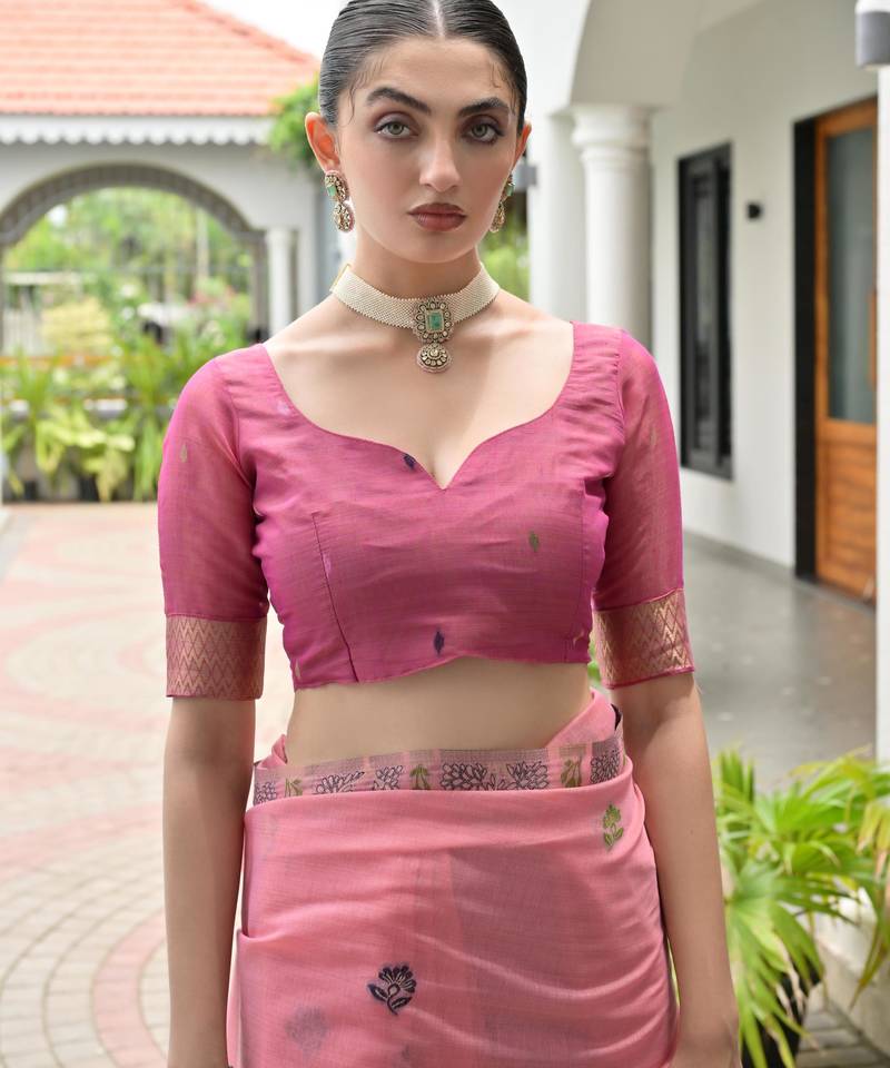 | Product Name | Pink Color Chanderi Cotton Fabric Weaving Reshan Flower Designer Ethnic Saree | |