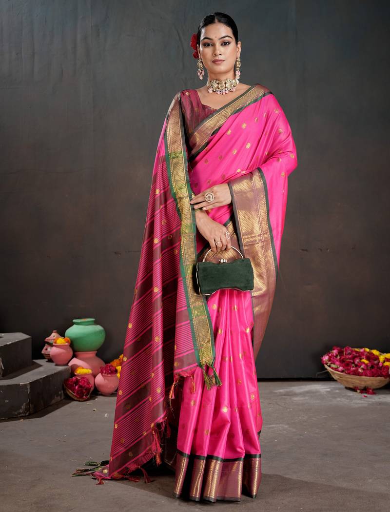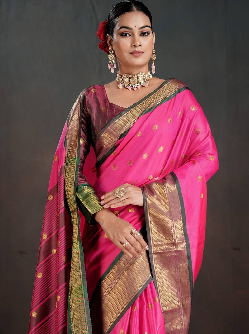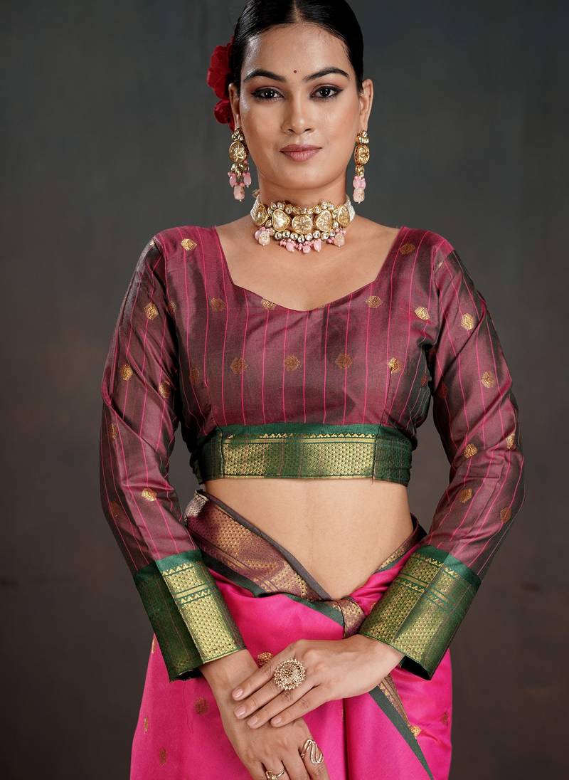 | Product Name | Pink Color Graceful Art Silk Fabric Woven Jacquard Designer Saree | |