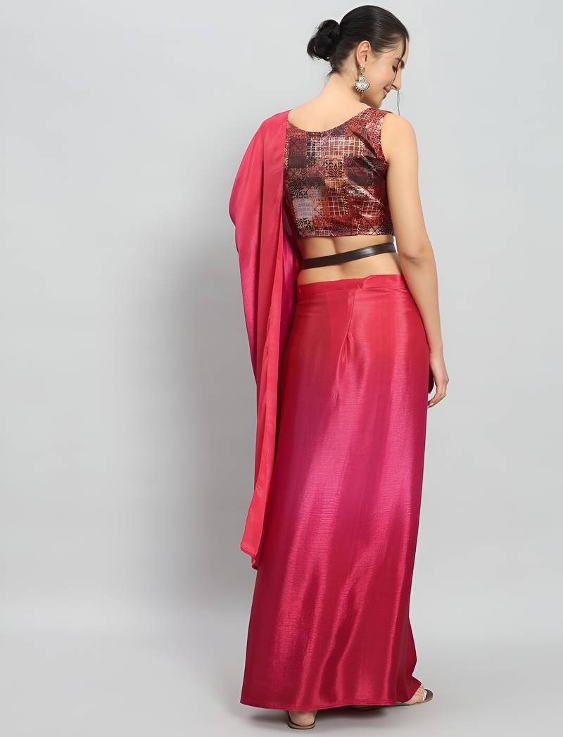| Product Name | Pink Color Ready To Wear Chinon Fabric Saree For Stylish Looks | |