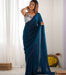 | • | Saree | : | Color- Blue / Fabric- Faux Tissue |