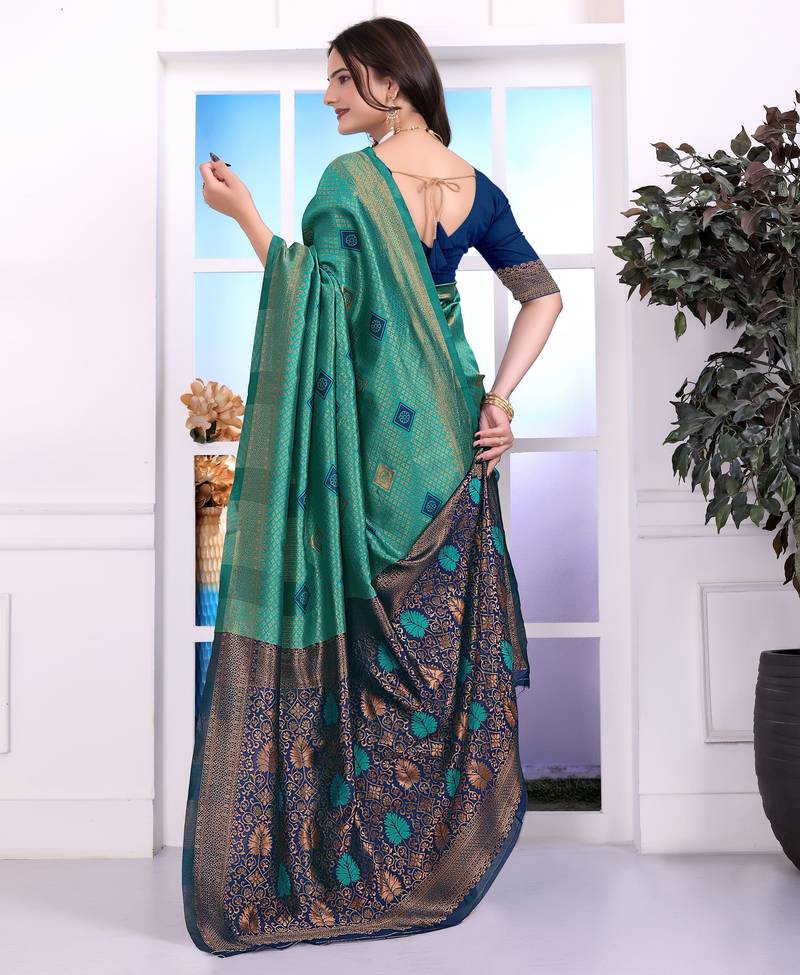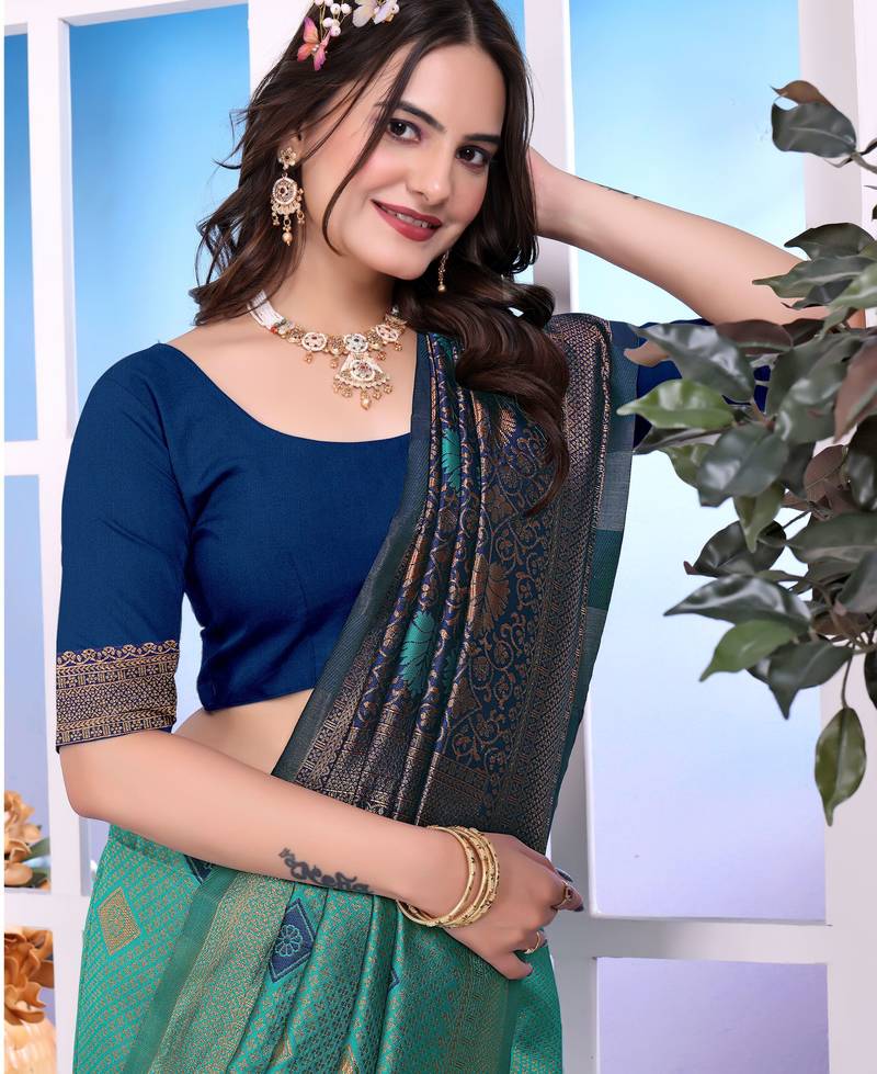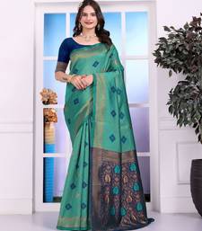 Rama color festive special traditional art silk woven designer saree