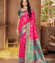 Rani pink color silk blend fabric woven designer ethnic partywear saree
