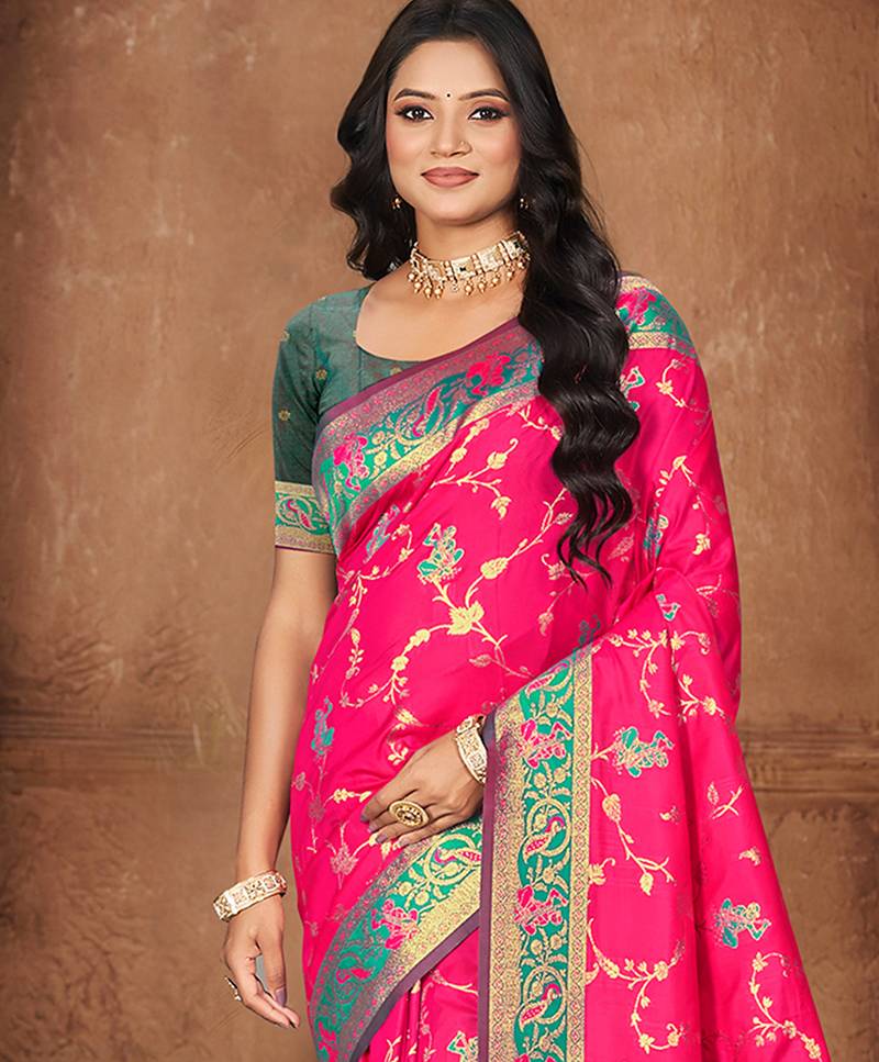 | Product Name | Rani Pink Color Silk Blend Fabric Woven Designer Ethnic Partywear Saree | |