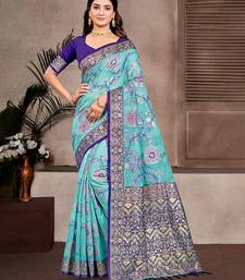 Sky blue color cotton silk blend fabric woven meenakari designer partywear saree