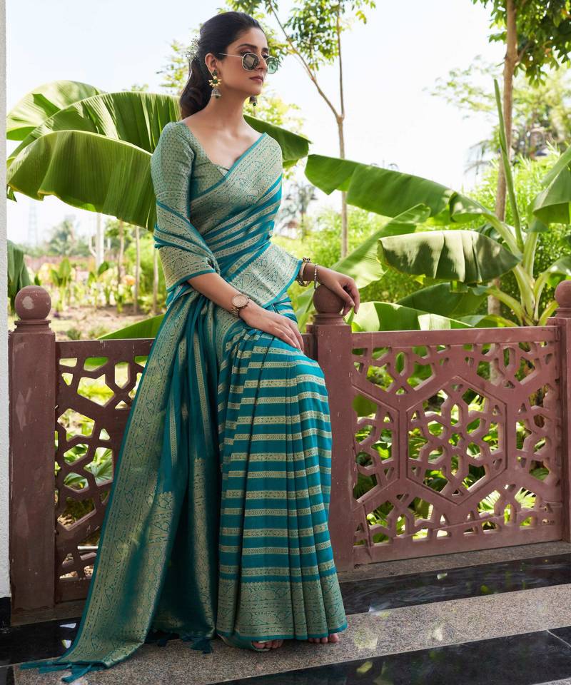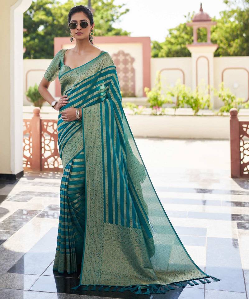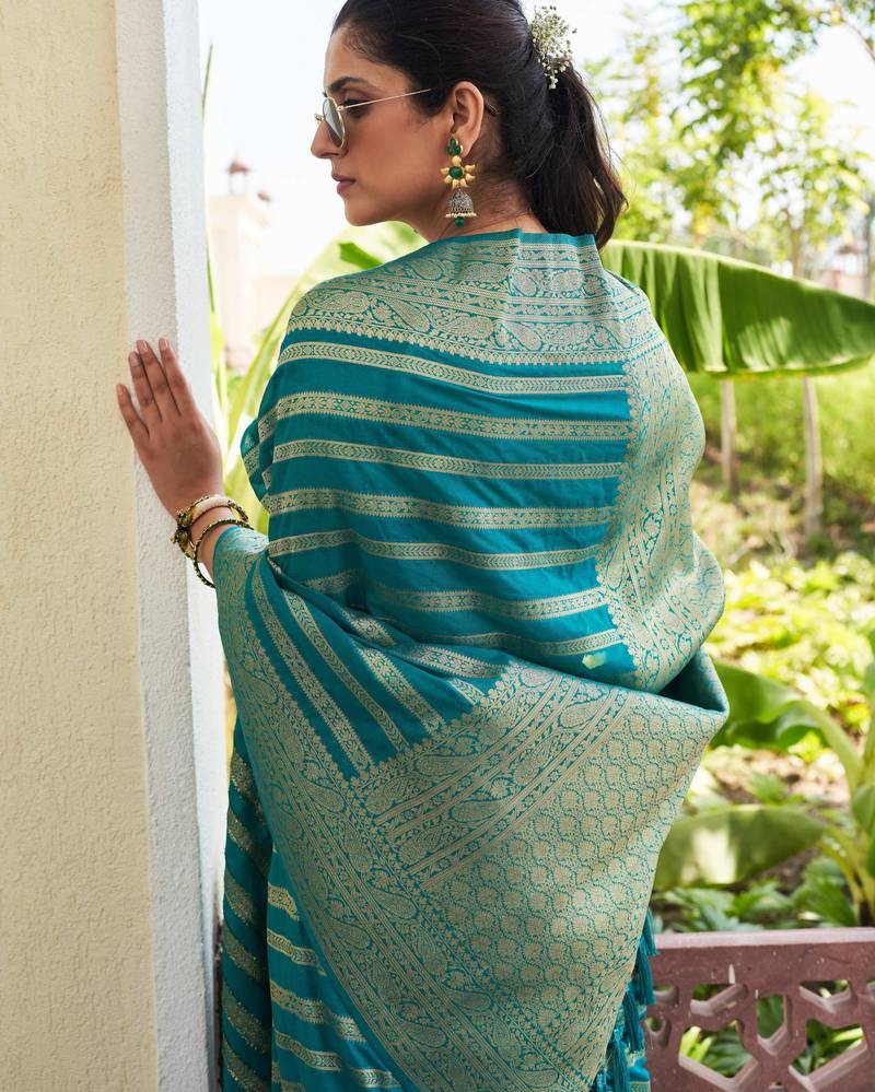 | Product Name | Teal Color Beautiful Woven Designer Partywear Ethnic Saree | |