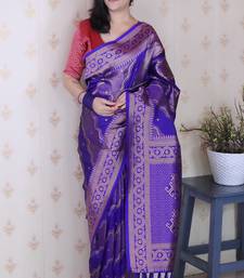 Violet color soft silk blend woven jari designer ethnic partywear saree