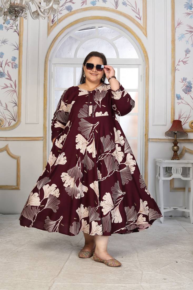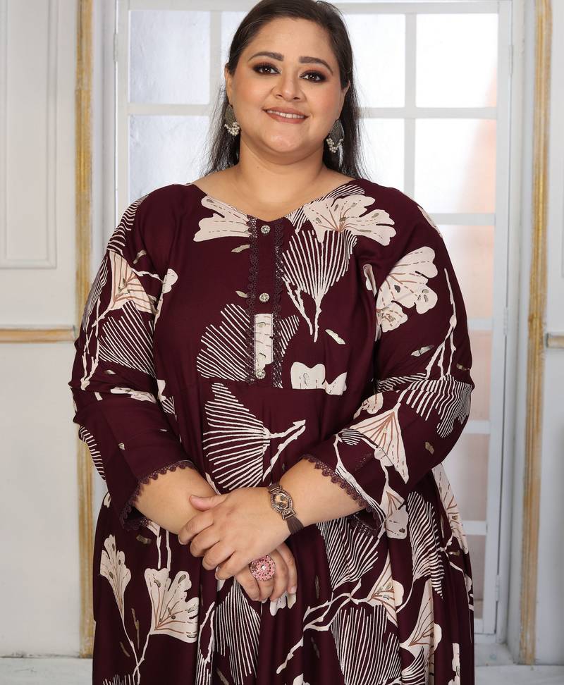 | Product Name | Wine Rayon Embroidered Printed Plus Size Kurta For Girls | |