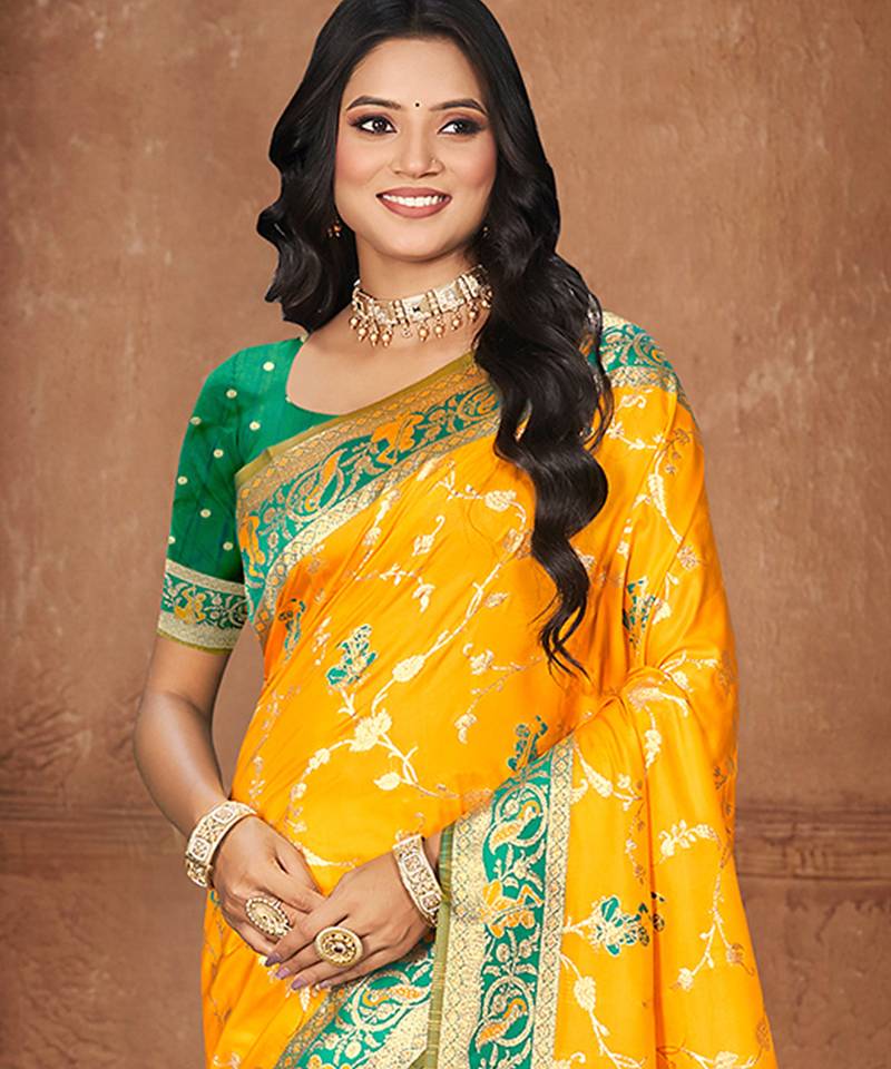 | Product Name | Yellow Color Silk Blend Fabric Woven Designer Ethnic Partywear Saree | |