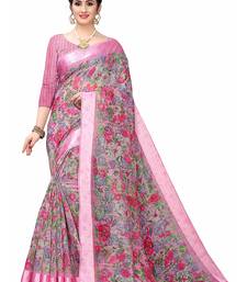 Cotton blend digital print floral pattern tassels saree