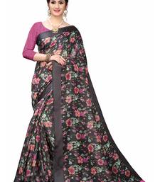 Cotton blend digital print floral pattern tassels saree