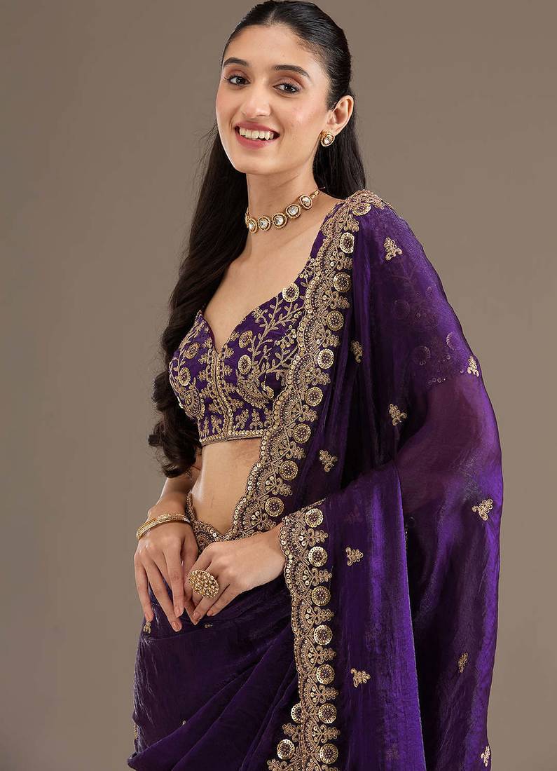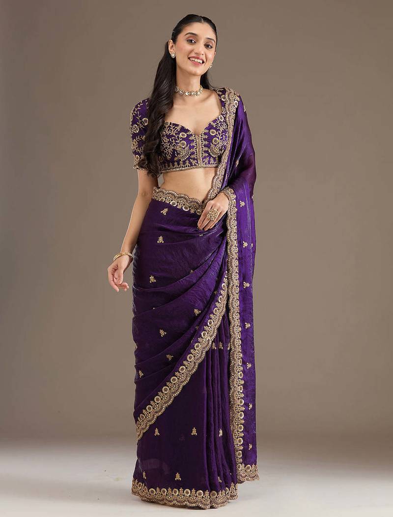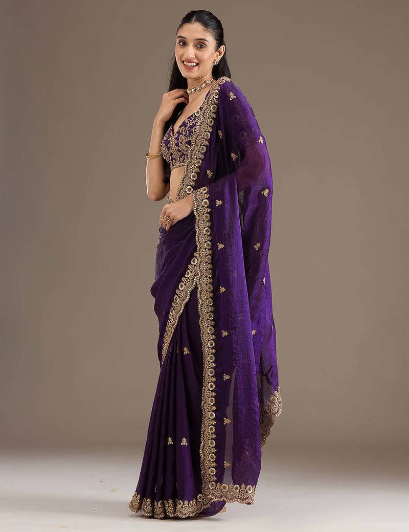 | • | Saree | : | Color- Purple / Fabric- Satin |