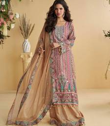 Soft pink embroidery and hand work only crep straight long kurti sharara-full stitched free size