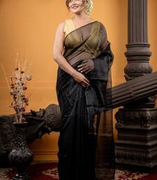 Black hand woven silk blend cotton bengal handloom all seasons sarees