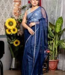 Blue woven organza stone work all seasons sarees