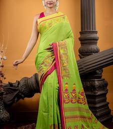 Green hand woven cotton bengal handloom all seasons sarees