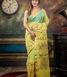 Green hand woven silk blend cotton bengal handloom all seasons sarees