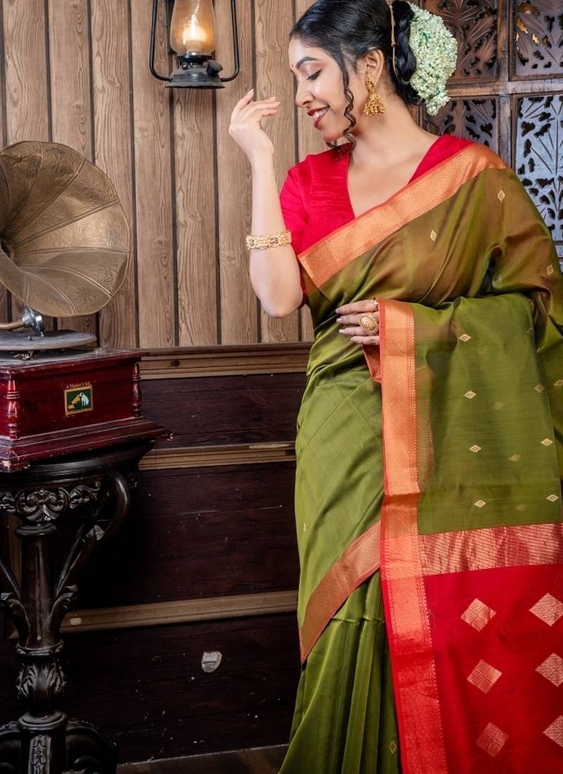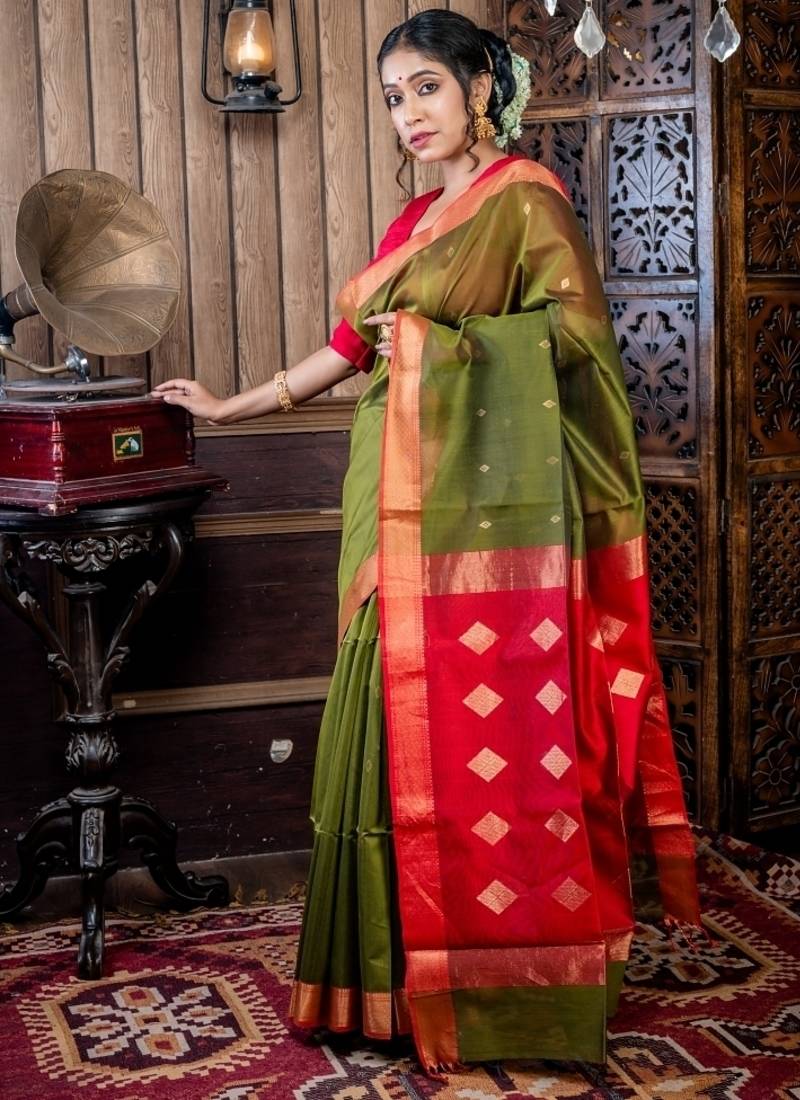 | Product Name | Green Hand Woven Silk Blend Cotton Zari Work All Seasons Sarees | |