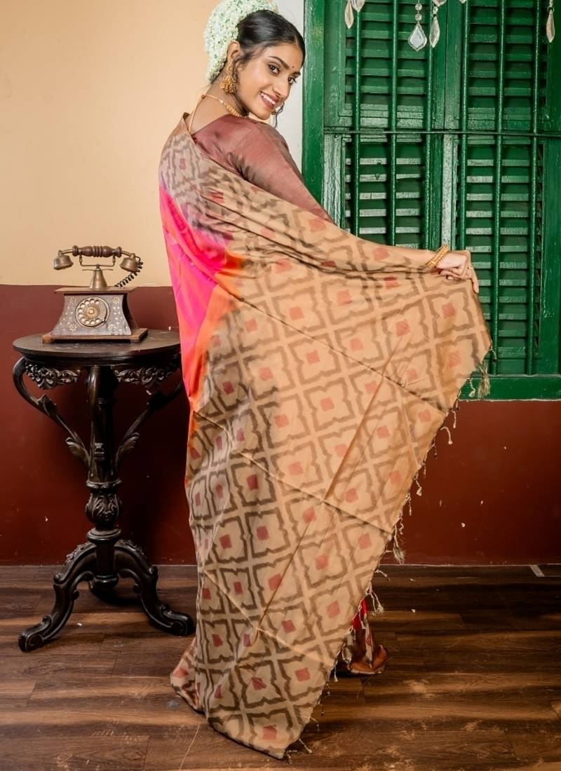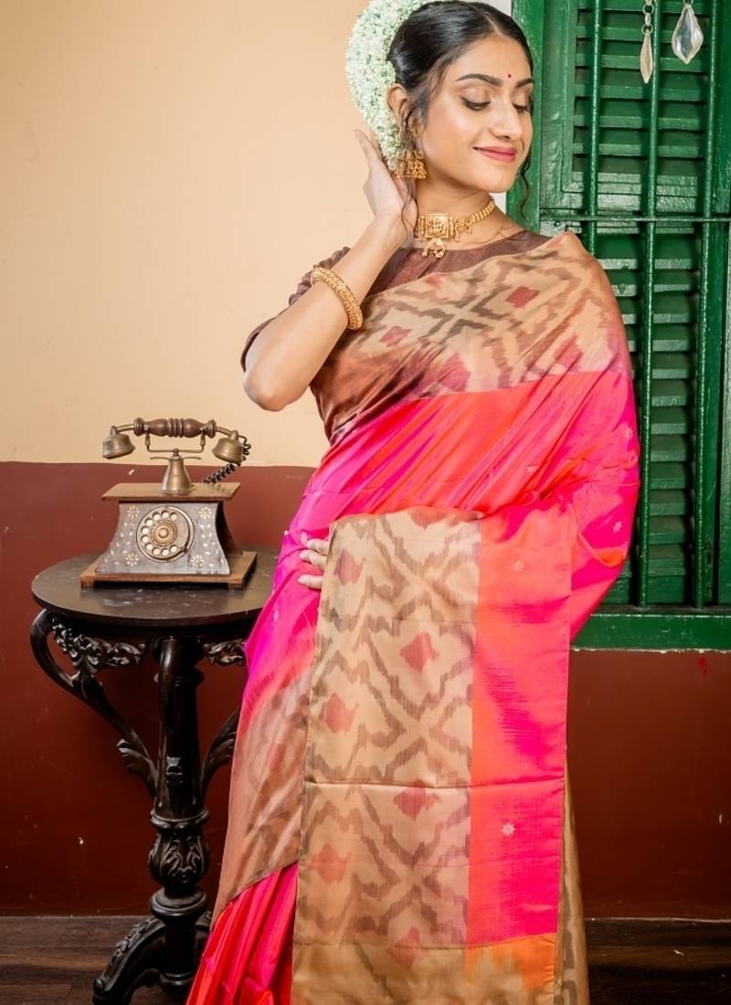 | Product Description | The Magenta &Rust Orange Dual Tone Pattu Soft Silk Handloom Saree Exudes Timeless Elegance & Cultural Heritage. The Pattu Soft Silk Base Features All Over Copper Zari Buti & Buta, Adding Subtle Shimmer & Intricate Detail. The Saree Is Further Elevated By A Peanut Brown & Antique Gold Dual Tone Abstract Border & Pallu, Creating A Striking Contrast Perfect For Festivals, Weddings Or Celebrations.