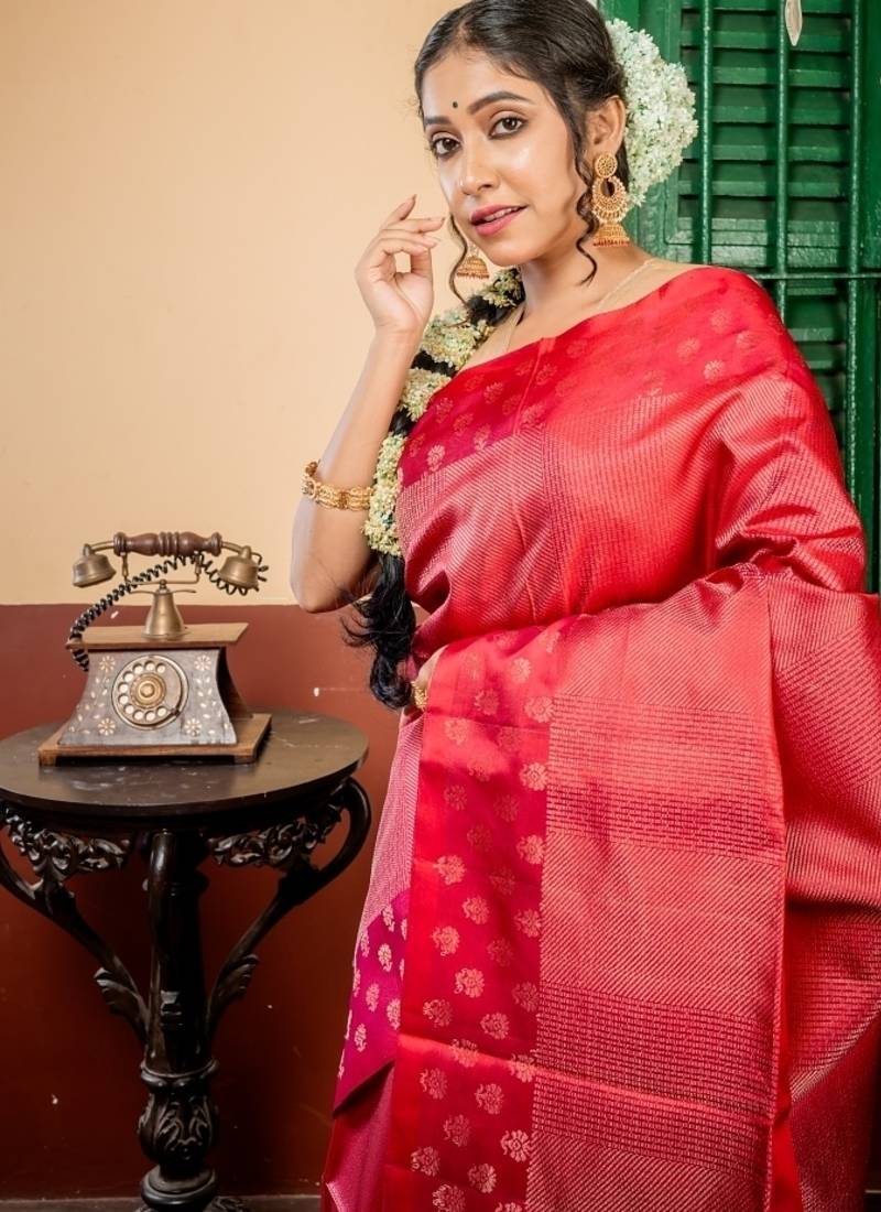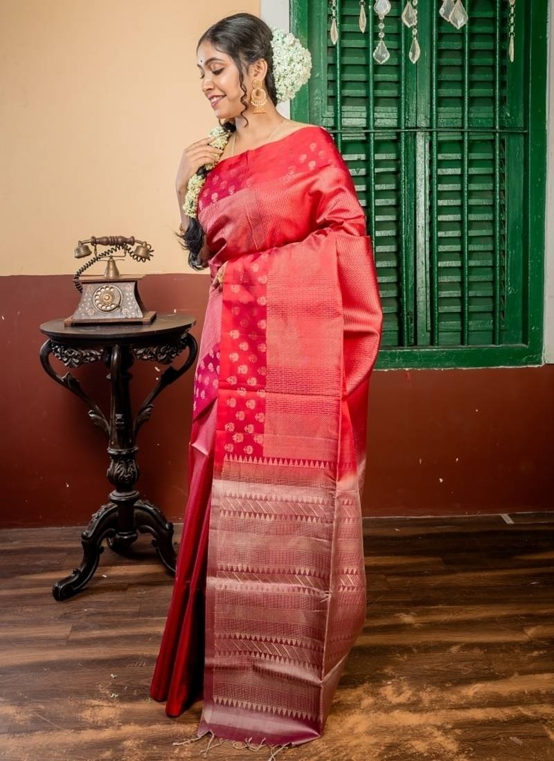 | Product Description | Maroon & Purple Dual Tone Pattu Soft Silk Handloom Saree Is A Stunning Interplay Of Bold Hues & Intricate Craftsmanship. The Pattu Soft Silk Base Is Detailed With All Over Antique Gold Zari In Abstract & Traditional Work.