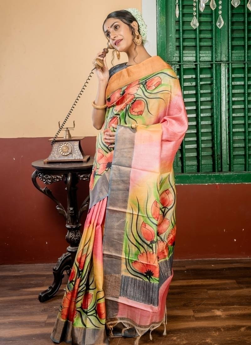 Multicolor hand woven tussar zari work all seasons sarees