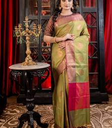 | Product Description | Vibrant & Harmonious, This Saree Celebrates Traditional Artistry With A Contemporary Twist. Featuring All Over Floral Buta Motifs Woven In Copper Zari, The Sap Green &Mustard Yellow Dual Tone Soft Katan Banarasi Saree Blends Earthy Tones With Metallic Warmth, Creating A Captivating Interplay Of Colour & Texture.