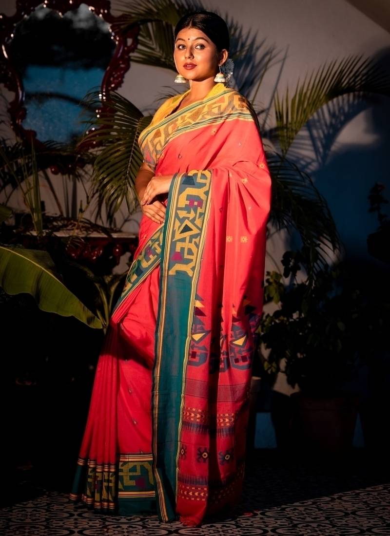 Pink hand woven cotton bengal handloom all seasons sarees