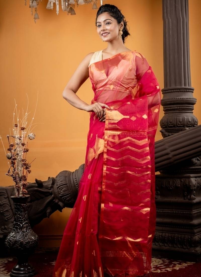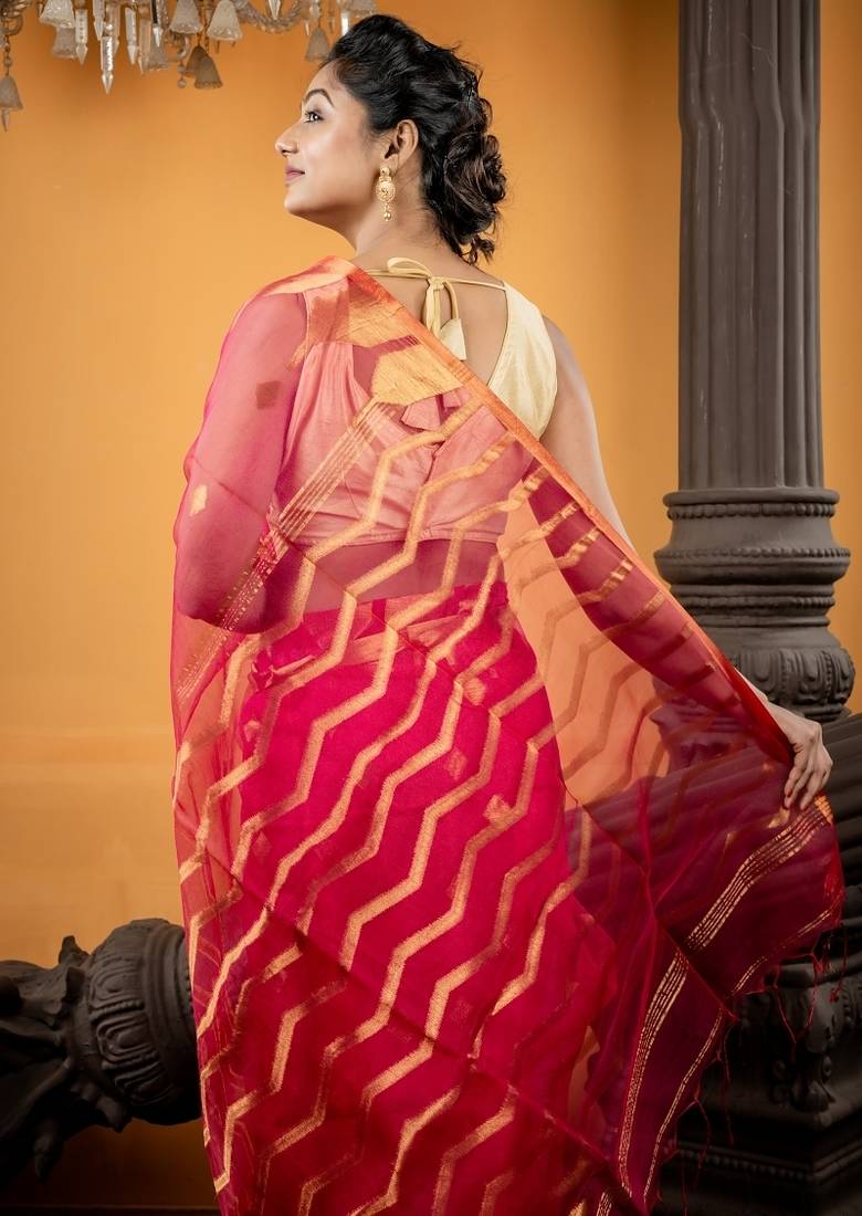 | Product Description | The Magenta Pink Muslin Saree Features All Over Golden Zari Abstract Buta, Complemented By A Zigzag Stripe Pallu & A Sleek Border Adorned With Traditional 'temple' Motifs — A Perfect Blend Of Artistry & Elegance.