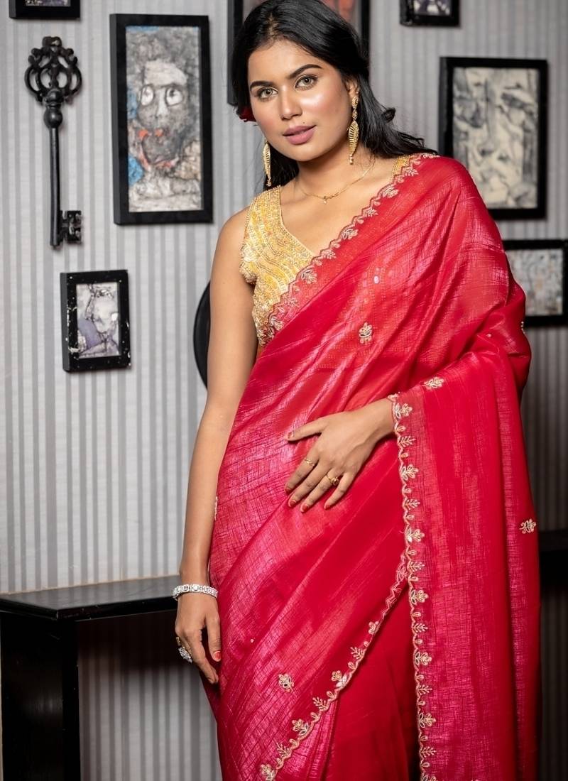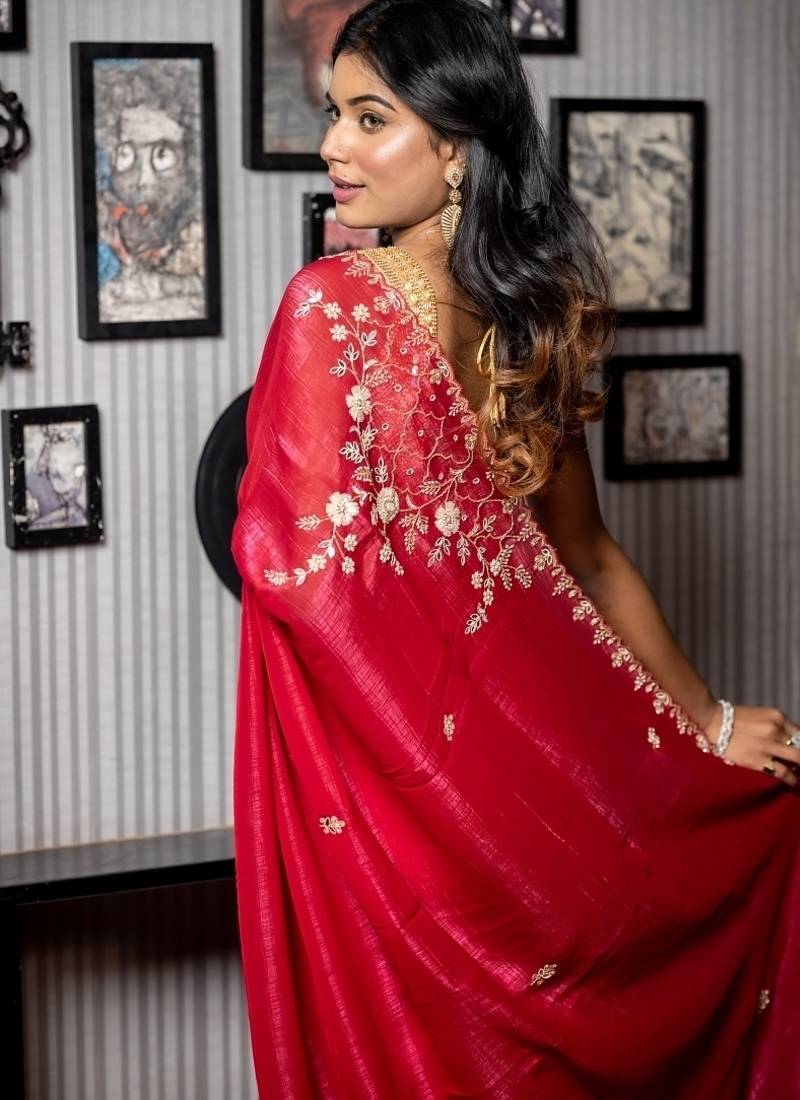 | Product Name | Red Woven Faux Shimmer Sequins Work All Seasons Sarees | |