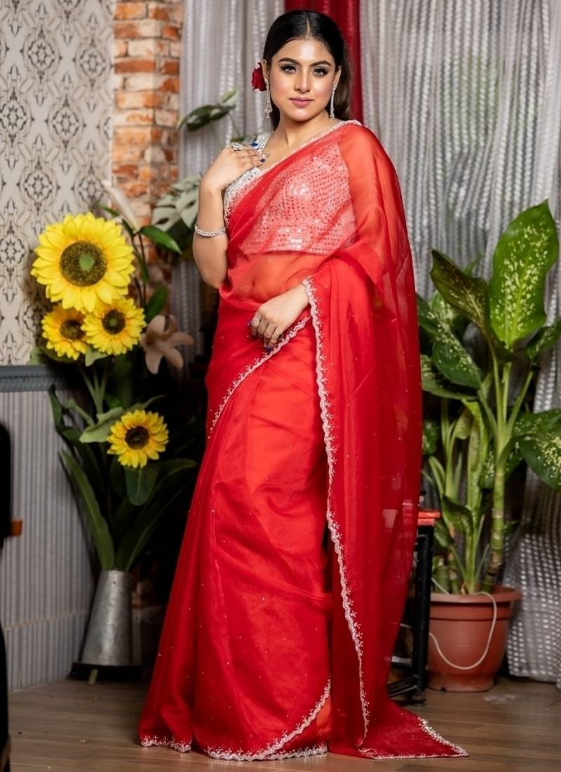 | • | Saree | : | Color- Red / Fabric- Organza |