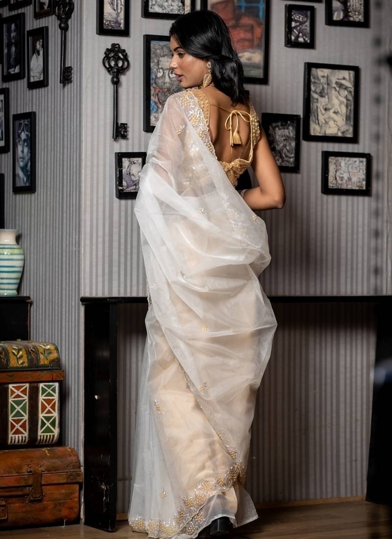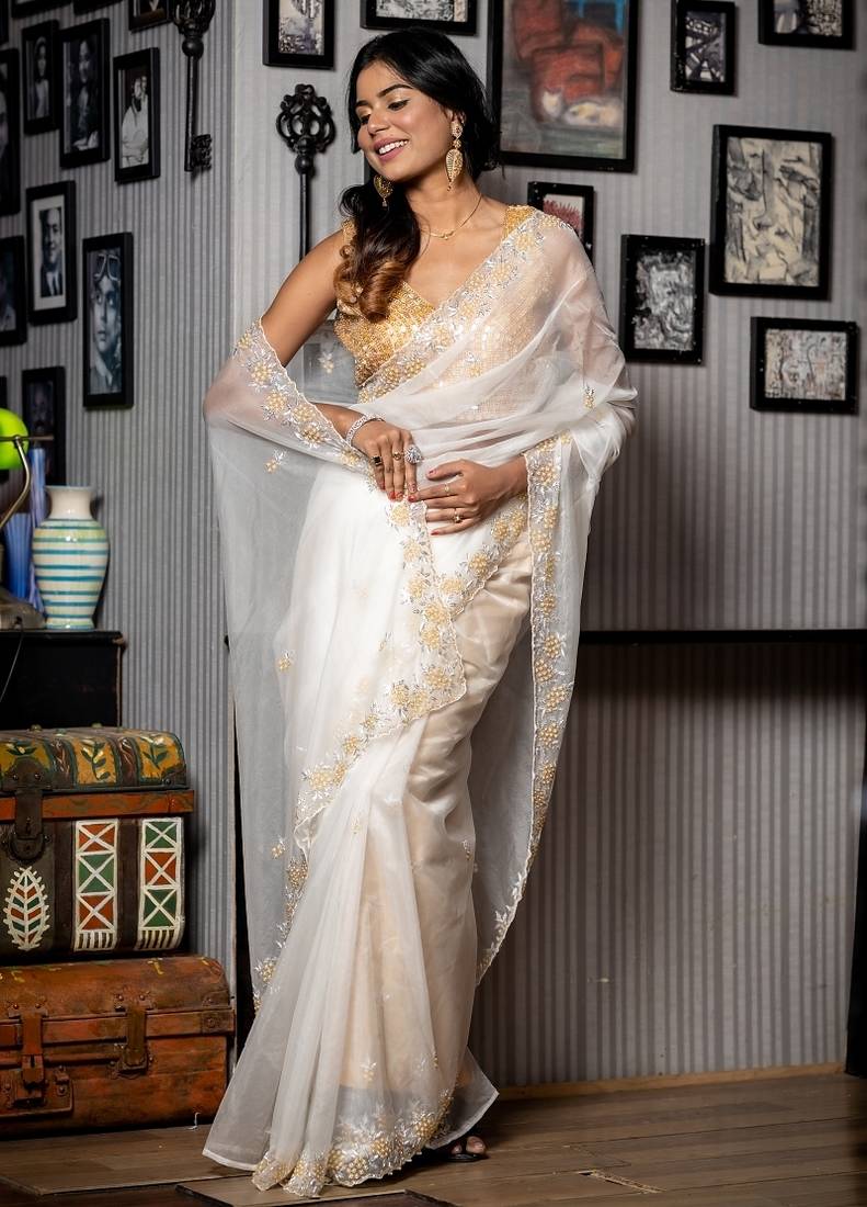 | • | Saree | : | Color- White / Fabric- Organza |