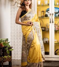 Yellow woven tussar silk blend bengal handloom all seasons sarees