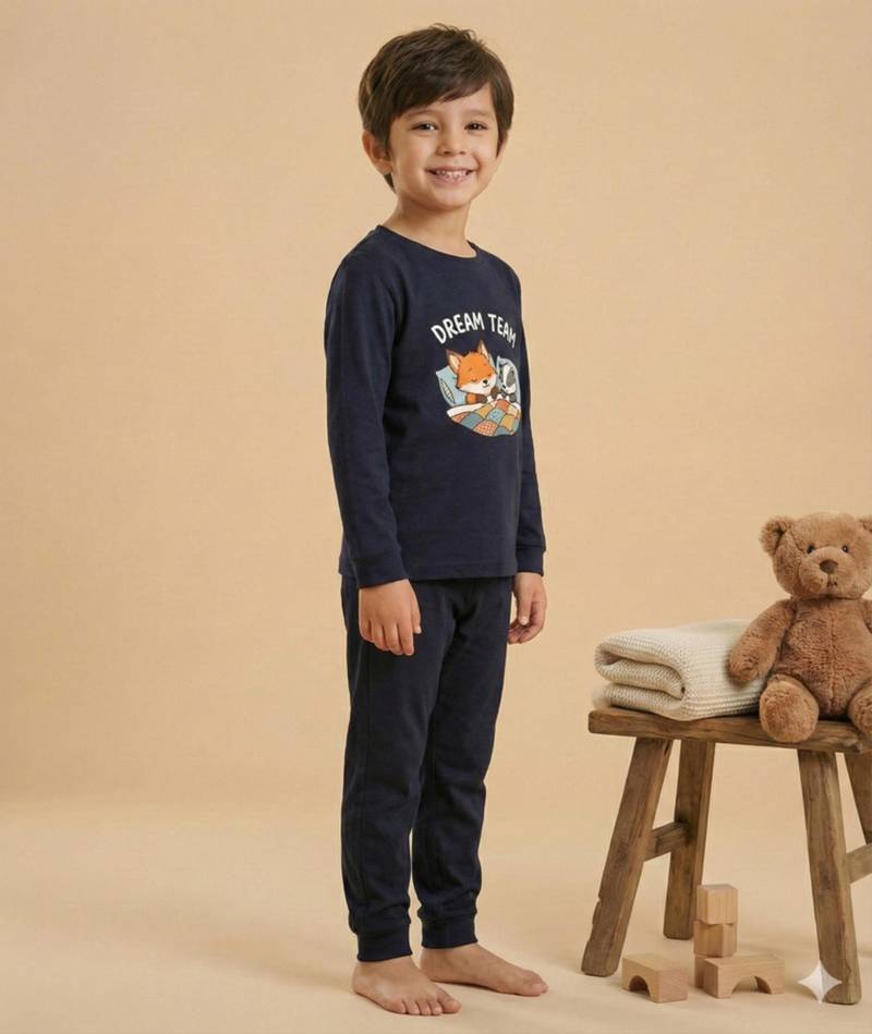 | Product Name | Boys Cotton Navy Blue Bedtime Buddies Printed Nightsuit | |