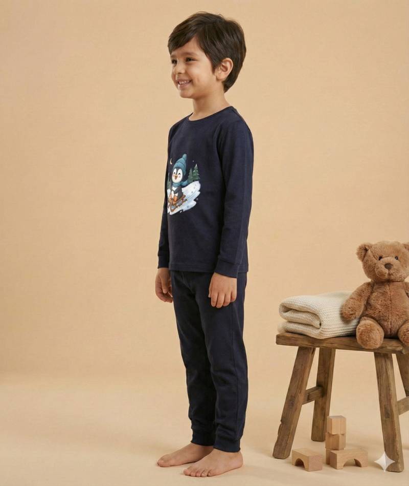 | Product Name | Boys Cotton Navy Blue Penguin Fun Ride Printed Nightsuit | |