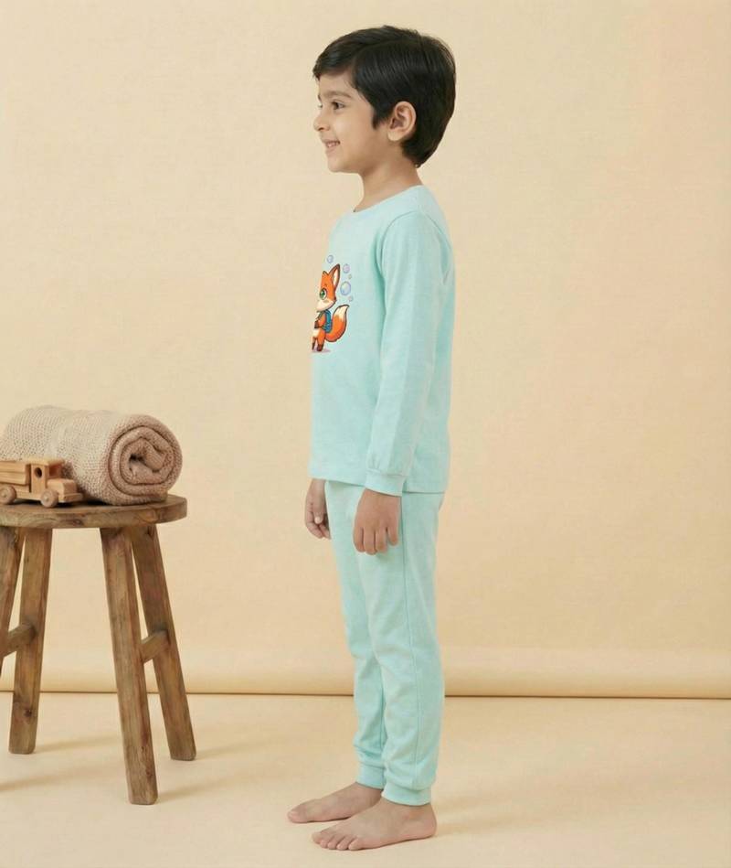 | Product Name | Boys Cotton Sea Green Bubble Fox Printed Nightsuit | |