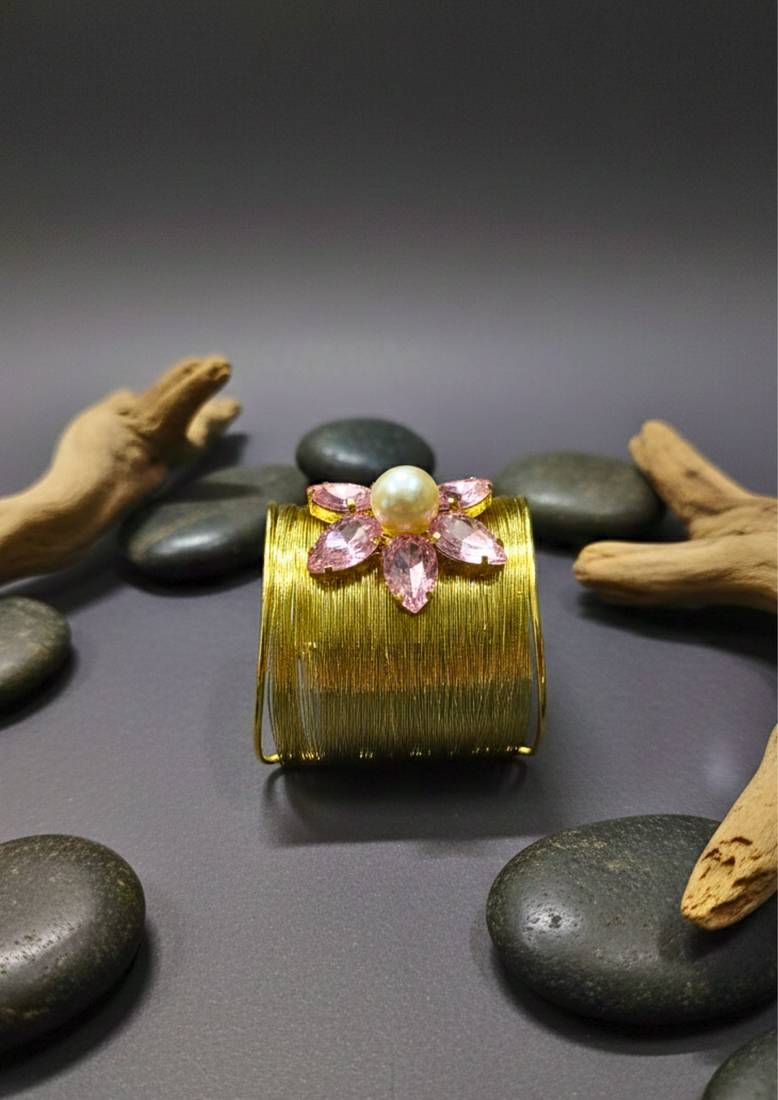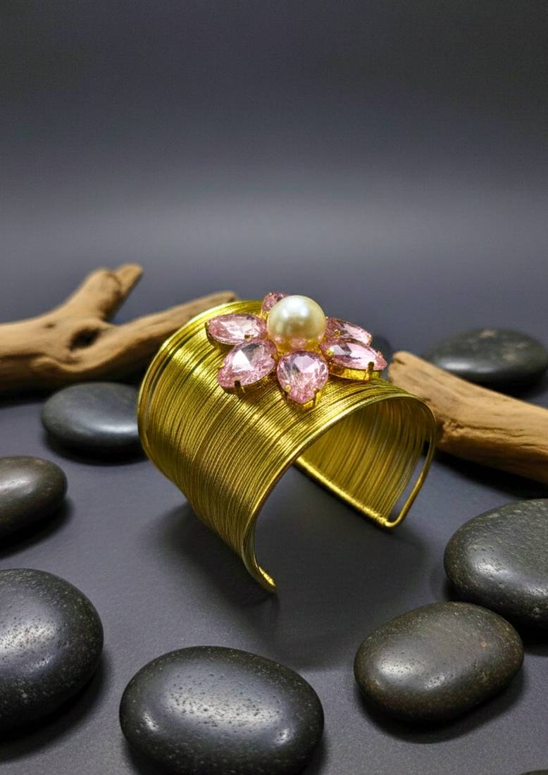 | Product Description | Combo Of Two Gold Plated Mess Wire Cuff Bracelet Adorned With A Floral Pattern With Dazzling Dazzling Pink Korean Cz Shiny Glass Crystal Stone. Its Intricate Wire Design And Bold Centerpiece Exude Elegance And Sophistication. Lightweight, Adjustable, And Perfect For Elevating Both Casual And Festive Looks. A Timeless Statement Piece For Every Jewelry Lover. |