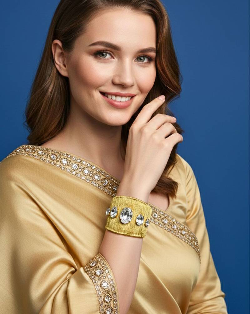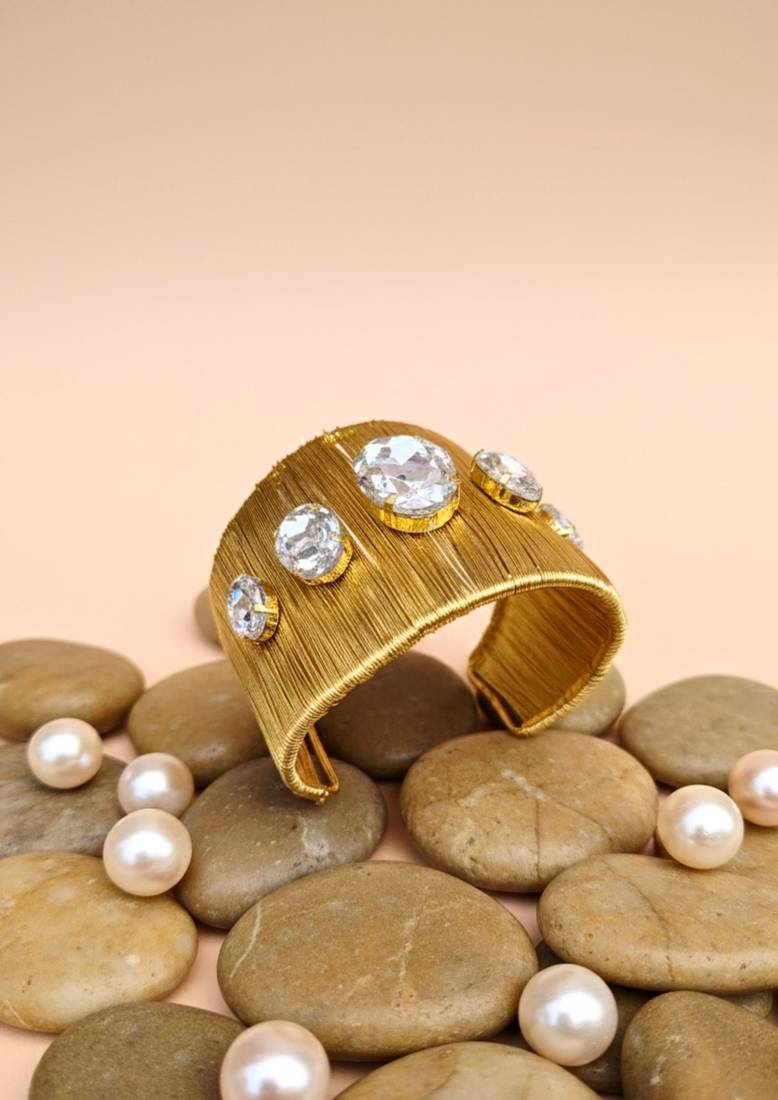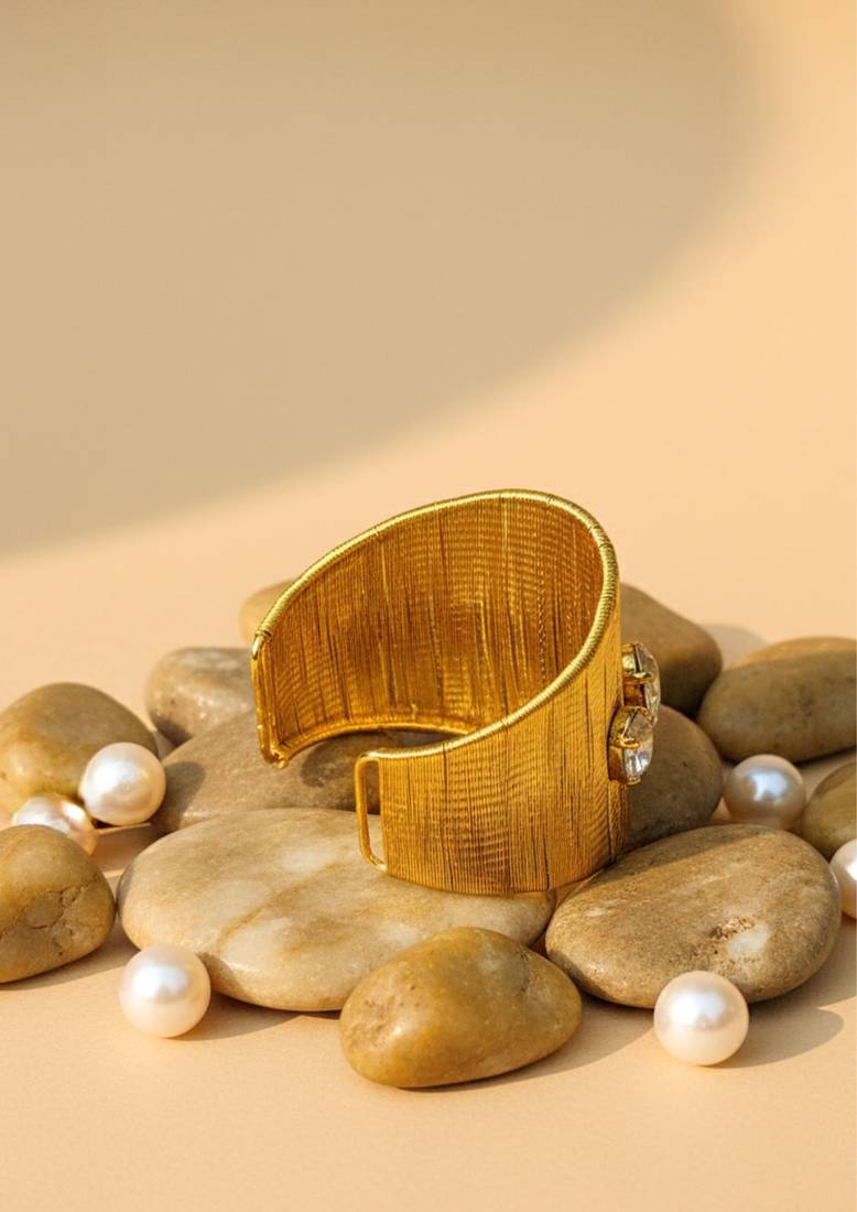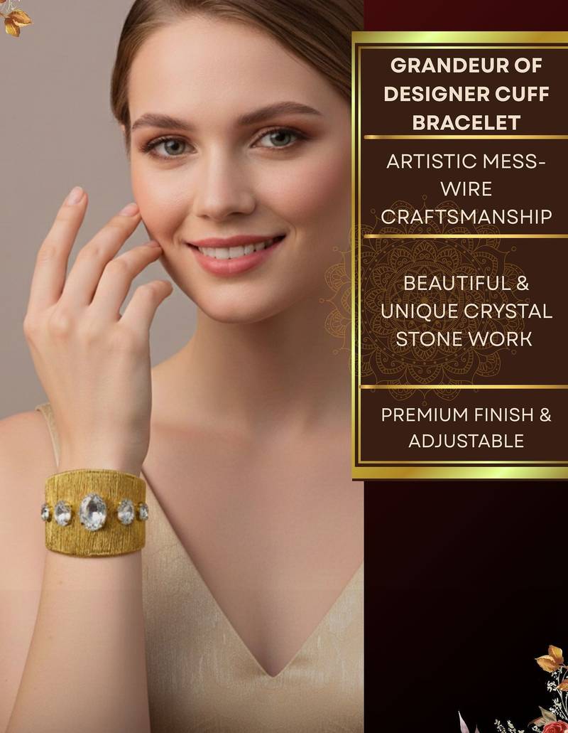 | Product Description | Combo Of Two Gold Plated Mess Wire Cuff Bracelet Adorned With A Dazzling Big White Korean Cz Shiny Glass Crystal Stone.Its A Lightweight, Adjustable, And Perfect For Elevating Both Casual And Festive Looks. A Timeless Statement Piece For Every Jewelry Lover. |
