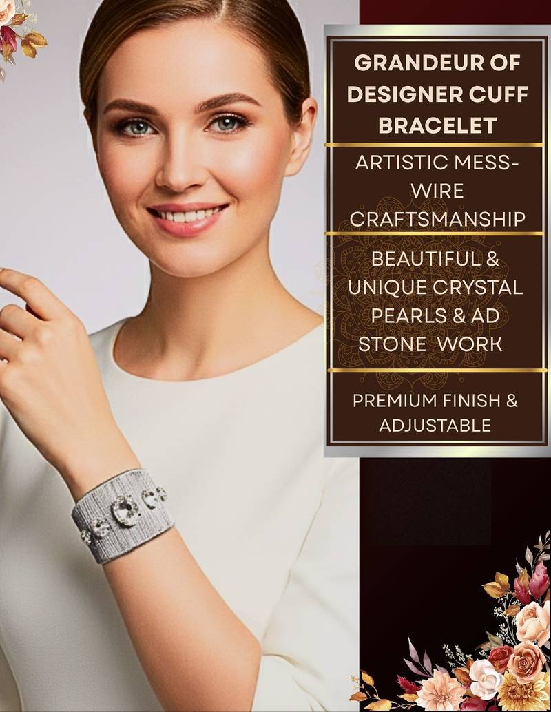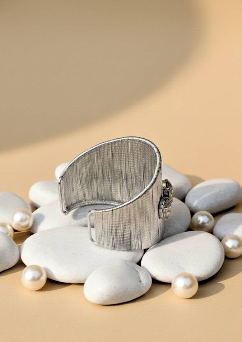 | Product Description | Combo Of Two Rhodium Plated Mess Wire Cuff Bracelet Adorned With A Dazzling Big White Korean Cz Shiny Glass Crystal Stone.Its A Lightweight, Adjustable, And Perfect For Elevating Both Casual And Festive Looks. A Timeless Statement Piece For Every Jewelry Lover. |