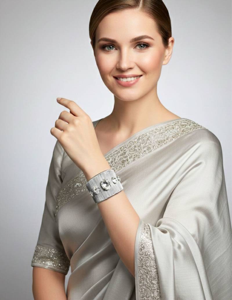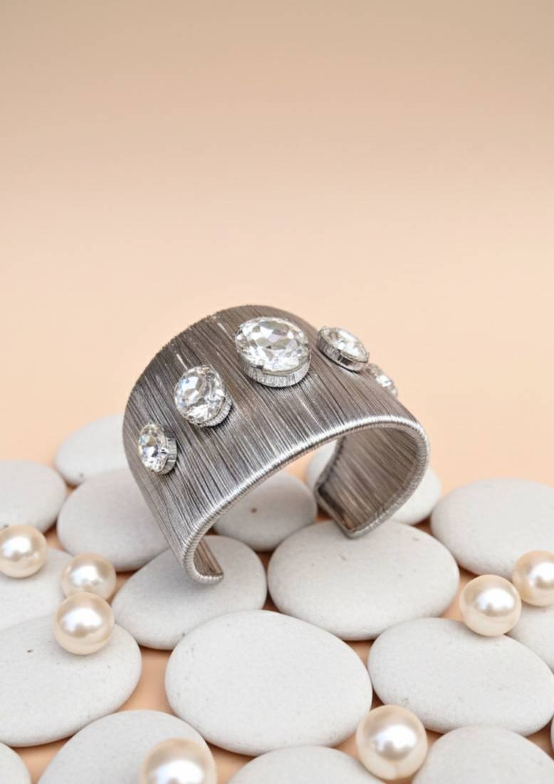 | Product Description | Rhodium Plated Mess Wire Cuff Bracelet Adorned With A Dazzling Big White Korean Cz Shiny Glass Crystal Stone.Its A Lightweight, Adjustable, And Perfect For Elevating Both Casual And Festive Looks. A Timeless Statement Piece For Every Jewelry Lover. |