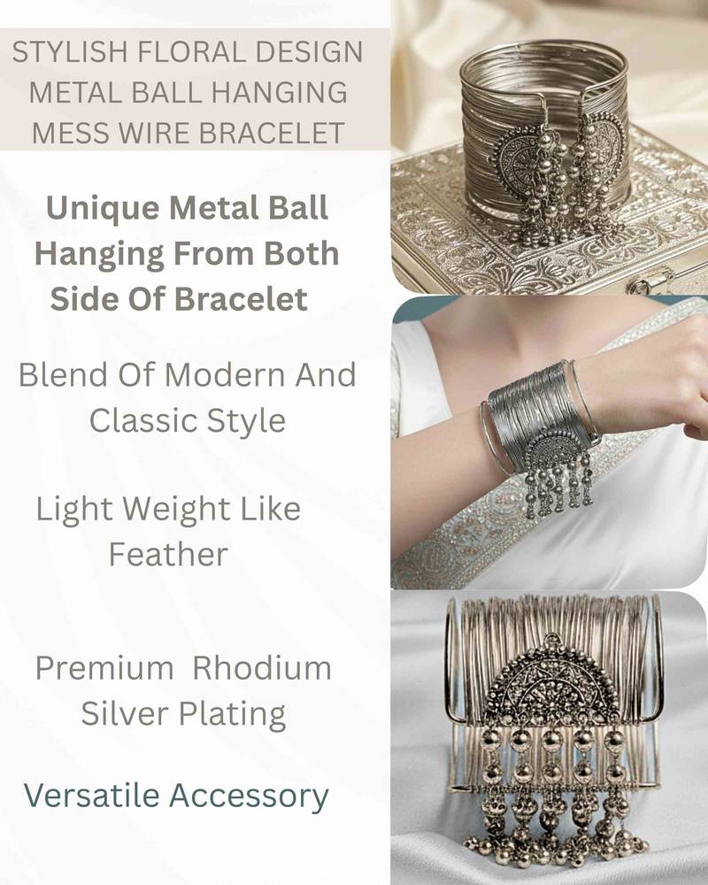 | Product Description | Silver Plated Fancy Stylish Hanging Balls Daily Wear Adjustable Cuff Bracelet |